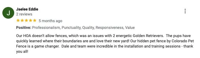 I’ve worked on thousands of successful electric pet fences installs for pet owners in the Colorado area and trained a crew to do the same. We actually offer a 100% guarantee of containment on our system installations because they are that effective.