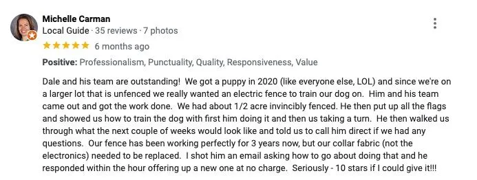 I have had thousands of happy customers, including veterinarian dog owners, that I’ve installed fences for and those fences have worked for years because we install them correctly with the right components, provide the right training, and continue to offer a service that even takes care of any issues after the installation.